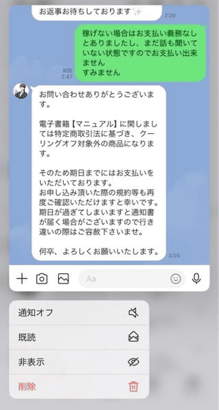 - 返金に応じない姿勢